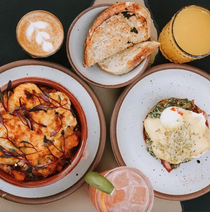 Breakfast skews hearty and traditional with French toast boards, cheesy burritos, and eggs every way. They also serve a decadent all day menu!